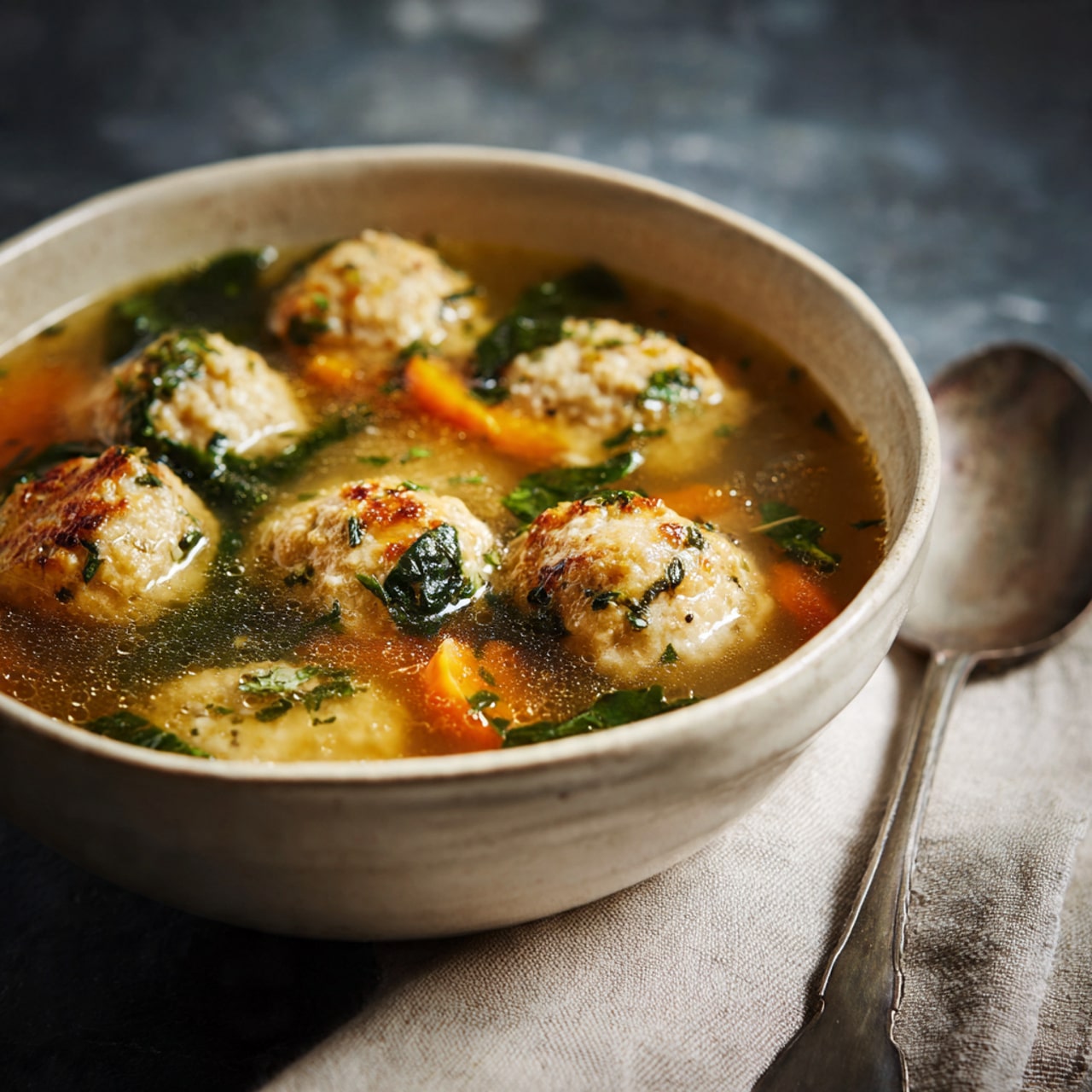 A warm and comforting chicken meatball soup made with tender meatballs, flavorful broth, and vegetables for a nourishing and satisfying meal.