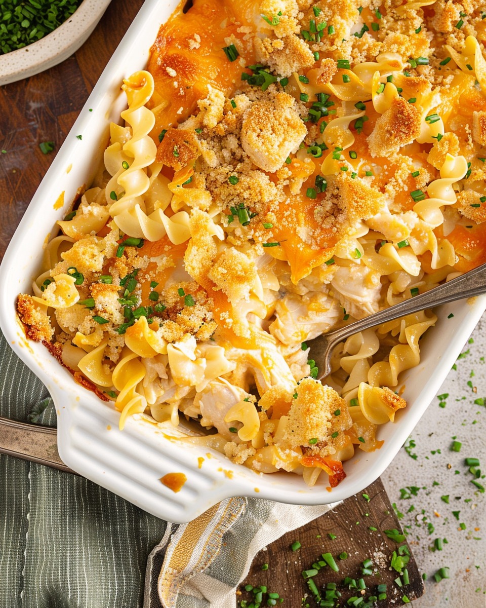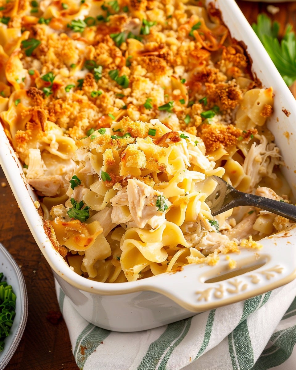 Chicken Noodle Casserole is a creamy, comforting baked dish made with egg noodles, tender chicken, vegetables, and a rich sauce, topped with a golden, buttery breadcrumb crust. It’s perfect for family dinners or meal prep.