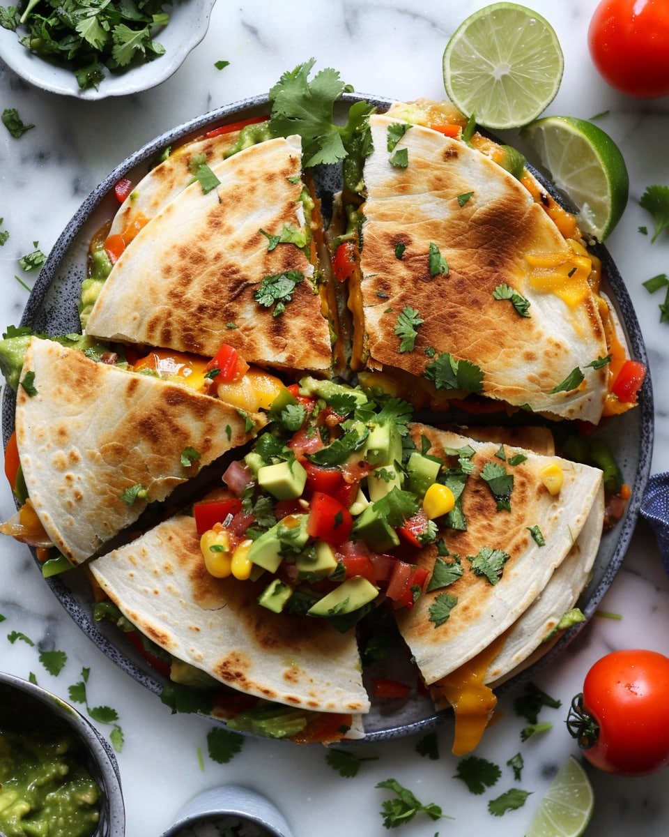 These Chicken, Pepper & Avocado Quesadillas with Fresh Cilantro Salsa are crispy, cheesy, and packed with flavorful fillings. Topped with a bright homemade salsa, they make a quick, satisfying lunch or dinner with a fresh twist.