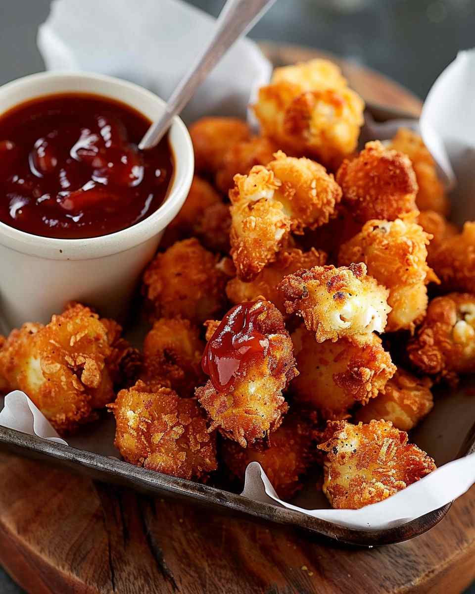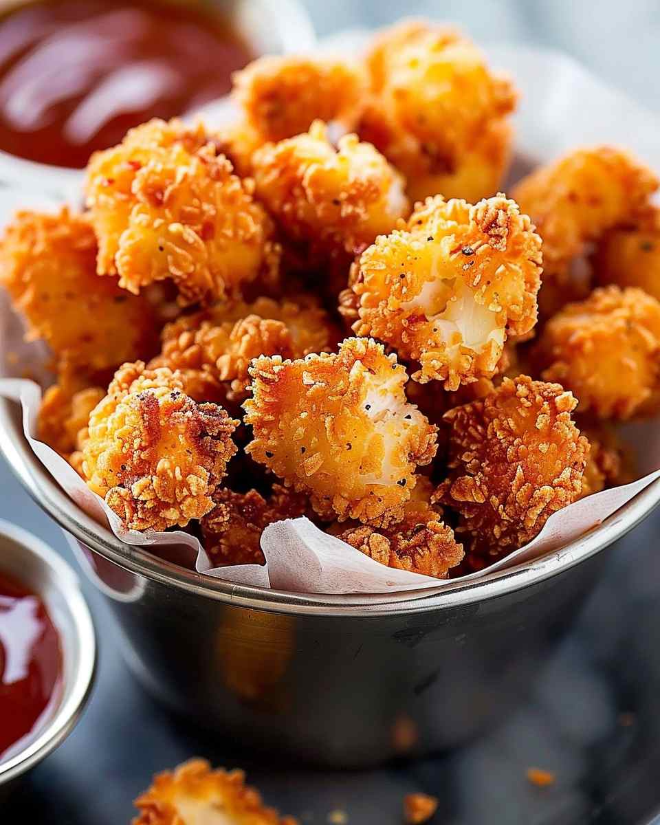 Crispy, bite-sized chicken pieces seasoned and fried to golden perfection, making a fun and satisfying snack or meal.