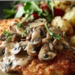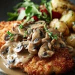 I love how this recipe brings together two comfort food favorites: crispy fried chicken and creamy mushroom gravy. The schnitzel is tender on the inside and perfectly crunchy on the outside, and the gravy adds a warm, earthy richness that takes the whole dish to the next level. It’s simple enough for a weeknight dinner, but special enough to serve to guests. Plus, it pairs beautifully with mashed potatoes, noodles, or a crisp salad.