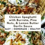 PrintChicken Spaghetti with Burrata, Pine Nuts, & Lemon Butter Garlic Sauce