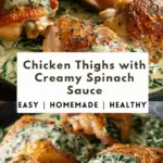 This Chicken Thighs with Creamy Spinach Sauce is a one-skillet wonder packed with flavor. Juicy, golden-seared chicken thighs are smothered in a rich garlic-Parmesan cream sauce with spinach for a comforting and quick weeknight dinner that feels elegant and satisfying.