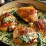 Chicken Thighs with Creamy Spinach Sauce is a rich and satisfying dish I love making when I want something that feels indulgent but is simple to prepare. The chicken is seared until golden and juicy, then smothered in a velvety sauce loaded with fresh spinach, garlic, and a hint of Parmesan. It’s hearty, comforting, and perfect for any night of the week.
