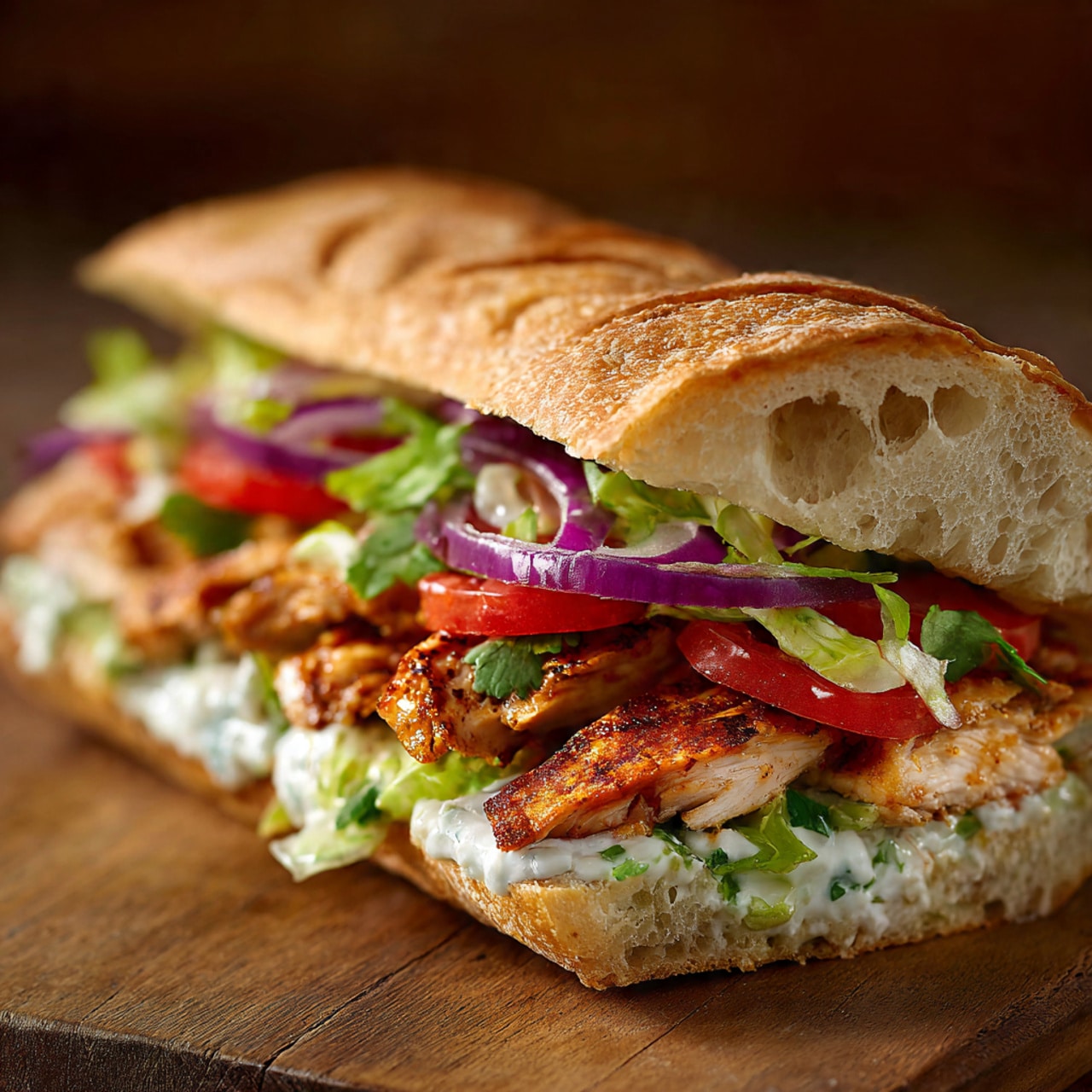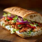 A hearty and flavorful Mexican-style chicken torta sandwich made with shredded chicken, creamy spreads, fresh vegetables, and soft bolillo rolls. This satisfying sandwich is perfect for lunch or dinner and offers a delicious balance of savory, creamy, and fresh flavors.