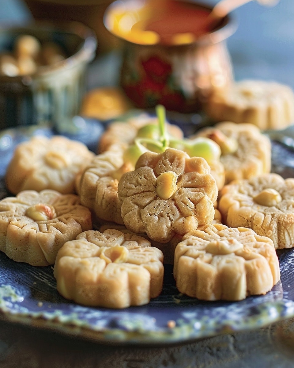 Nan Nokhodchi, or chickpea cookies, are a delicate Persian treat traditionally made for Nowruz, the Persian New Year. These melt-in-your-mouth cookies are made with roasted chickpea flour, sugar, and fragrant cardamom, shaped into tiny clover or flower forms, and baked until lightly golden. They are naturally gluten-free and incredibly aromatic, making them a perfect tea-time companion.