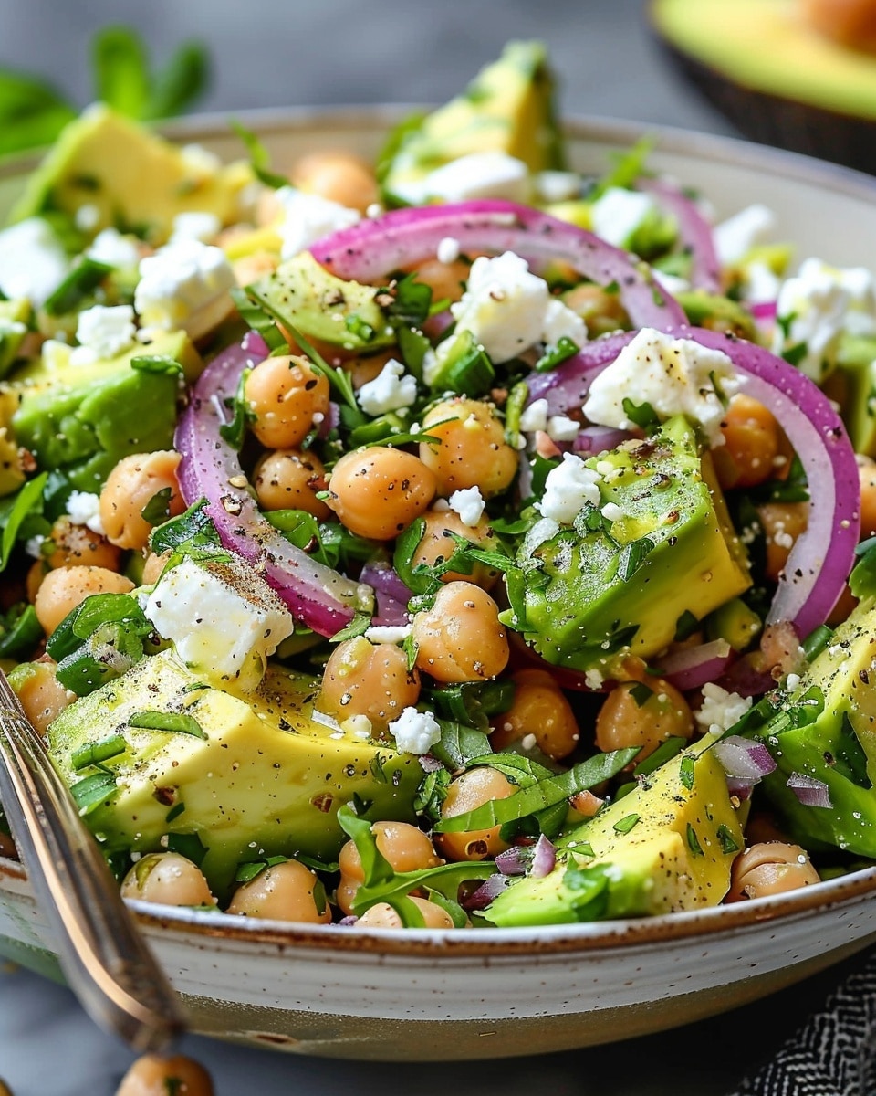 This Chickpea Feta Avocado Salad is a quick, healthy, and flavorful Mediterranean-inspired dish made with creamy avocado, salty feta, protein-rich chickpeas, and fresh herbs. Perfect for lunch, dinner, or entertaining guests, this vibrant salad is vegetarian, gluten-free, and ready in just 20 minutes.