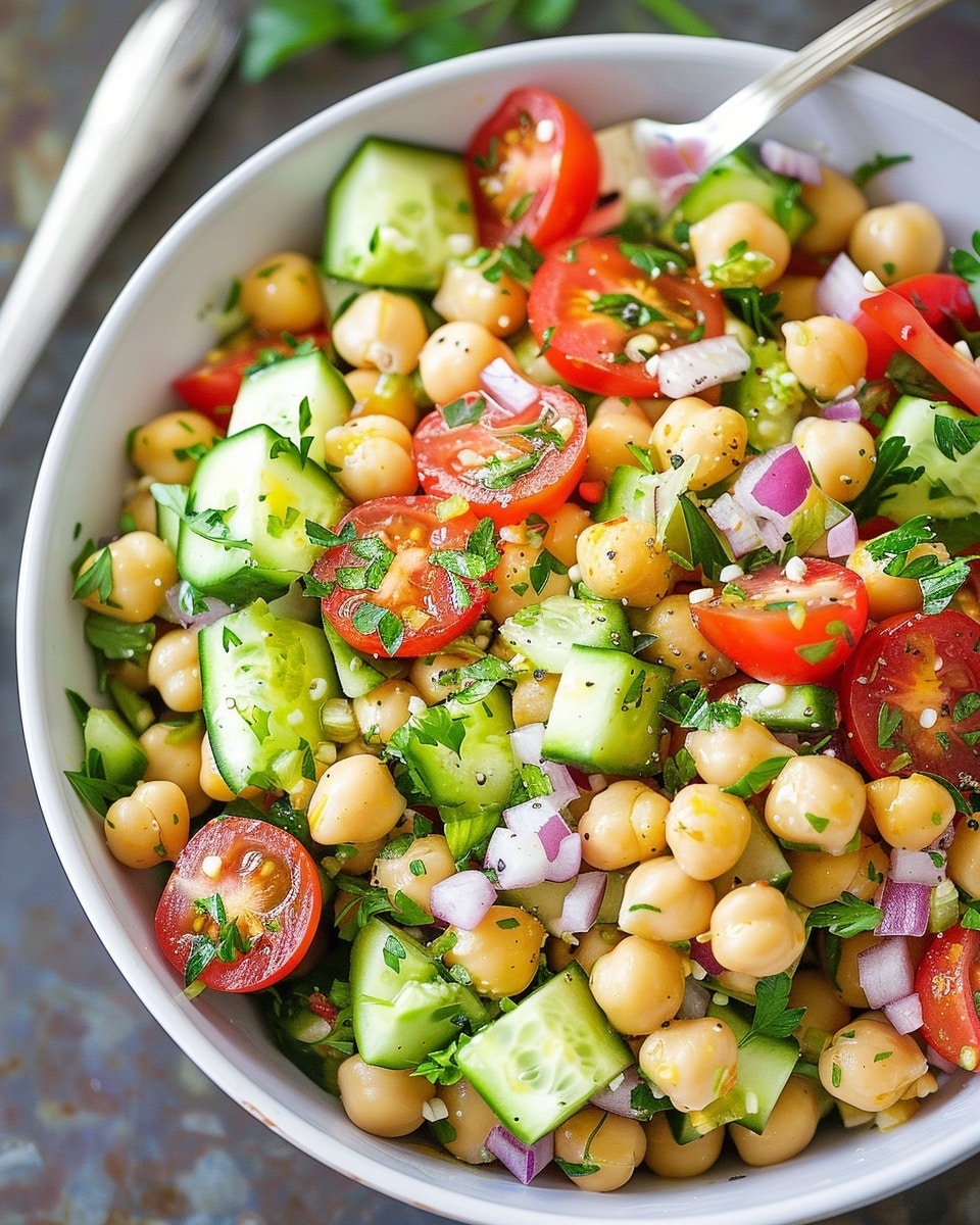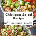 This Chickpea Salad Recipe is a quick, vibrant, and healthy meal featuring hearty chickpeas, fresh veggies, and a tangy lemon-garlic dressing—perfect for lunch, meal prep, or a flavorful side dish.