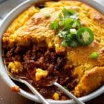 I love this dish because it combines two comfort food classics into one easy bake. The chili is rich and spicy, the cornbread is soft with a slight crunch on top, and together they make the kind of meal that brings people to the table fast. It’s simple to throw together, great for leftovers, and totally customizable.
