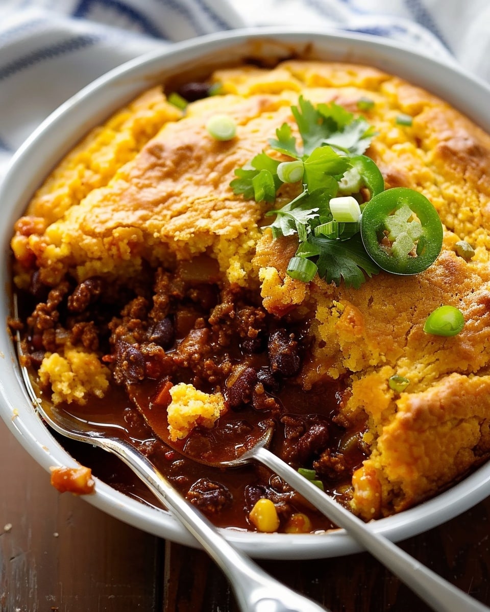 Sometimes I add diced bell peppers or jalapeños to the chili for more depth. I’ve also made it vegetarian by skipping the meat and using extra beans or lentils. For the topping, I sometimes stir in cheese or green chiles to give it more personality. If I’m short on time, I’ve used boxed cornbread mix and it still turns out great.