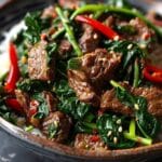 This chili garlic beef and spinach stir-fry is a bold, flavorful dish that comes together in just 20 minutes. Tender slices of beef, garlicky heat, and fresh wilted spinach are tossed in a savory-sweet chili garlic sauce—perfect over rice or noodles. Quick, easy, and packed with protein and greens, it’s your new go-to weeknight dinner.