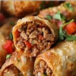 Sometimes I spice it up with jalapeños or chipotle powder. I also like using ground beef or turkey instead of chicken for a different flavor. If I want a vegetarian version, I skip the meat and add extra beans and veggies. And for a low-carb twist, I wrap the filling in lettuce leaves instead of eggroll wrappers.