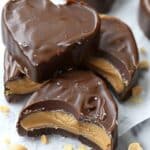 I keep the chocolate peanut butter hearts in an airtight container in the fridge for up to a week. They also freeze really well—I just separate layers with parchment paper and thaw them in the fridge before serving. I don’t reheat them since they’re meant to be eaten chilled or at room temperature.