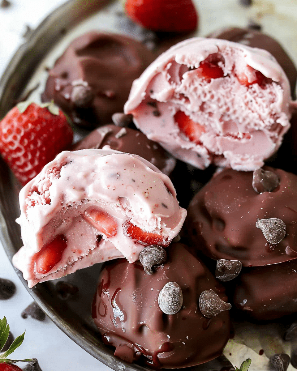 I like this recipe because it takes only three main ingredients, requires no baking, and can be ready to enjoy in under an hour (including freezing time). The Greek yogurt keeps them creamy and tangy, the strawberries add natural sweetness, and the chocolate coating makes them taste decadent. They remind me of little chocolate-covered frozen yogurt truffles—perfect for summer snacking or a light dessert.