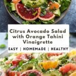 A bright and refreshing citrus avocado salad with creamy avocado, juicy oranges, and a smooth, nutty orange tahini vinaigrette for a perfectly balanced and vibrant dish.