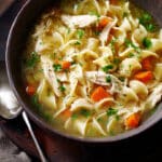 Leftovers store well in the fridge for up to 4 days. I reheat gently on the stovetop or in the microwave. If I know I’ll be storing some for later, I cook the noodles separately and add them fresh to each serving so they don’t get soggy. This soup also freezes beautifully—just leave the noodles out and add fresh ones when reheating.