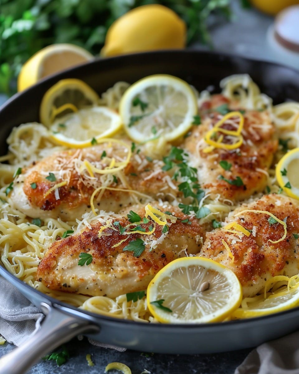 Comforting Lemon Chicken Romano is a crispy, cheesy, and citrusy chicken dish made with tender, breaded chicken cutlets and finished with a bright lemon sauce. Perfect for cozy family dinners or casual gatherings, it’s full of flavor and comes together with simple ingredients.
