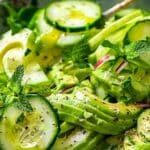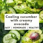 This cooling cucumber with creamy avocado is a quick and refreshing no-cook side dish, perfect for warm weather and clean eating. Naturally vegan, dairy-free, and Whole30-compliant, it’s a crisp, hydrating salad or dip bursting with fresh flavor.