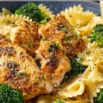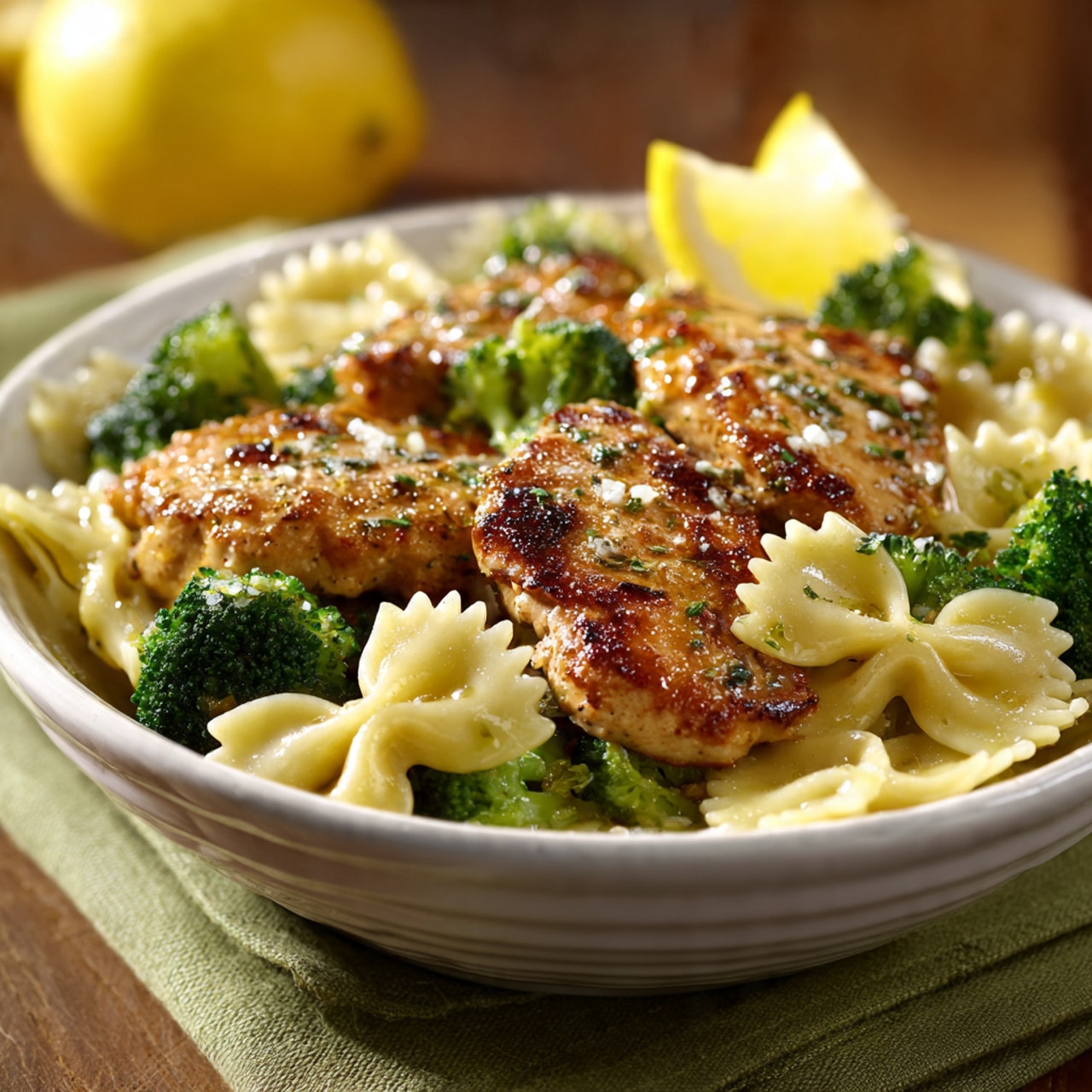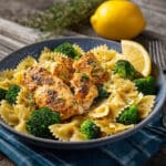 A bold and zesty chicken pasta dish featuring tender chicken, bright lemon, rich buttery garlic herb sauce, and bowtie pasta tossed with crisp broccoli. This comforting yet fresh meal comes together in under 40 minutes, making it perfect for busy weeknights.