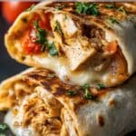 Warm, melty, and satisfying cheesy garlic chicken wraps filled with tender seasoned chicken and gooey mozzarella and cheddar, all toasted in a golden, crispy tortilla. Perfect for quick weeknight dinners or comforting weekend lunches.