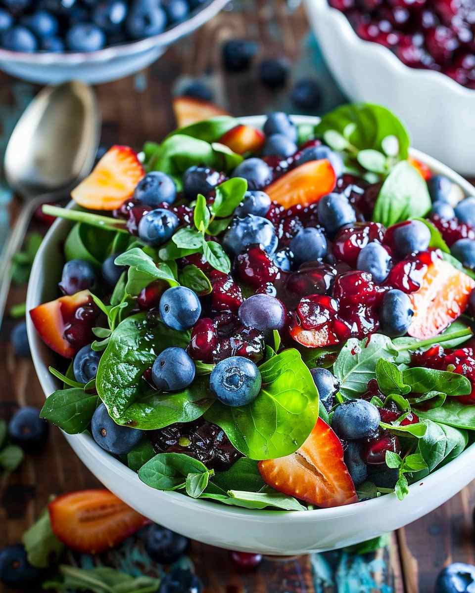 I find this cranberry blueberry salad with blueberry balsamic dressing to be a refreshing and elegant option that’s easy to prepare. It’s full of vibrant flavors and textures, making it a go-to recipe whenever I want something light yet flavorful.