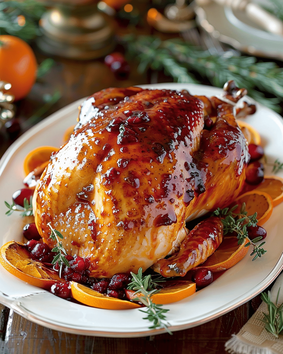 Cranberry Orange Glazed Turkey Breast is a juicy, flavorful holiday dish featuring a sweet-tart glaze made with fresh cranberries, orange juice, brown sugar, and warm spices. This easy roast turkey breast is perfect for Thanksgiving, Christmas, or any festive dinner when you want something special without the stress of roasting a whole bird.