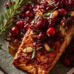 Cranberry Orange Salmon with Caramelized Onions & Almonds is a fresh, flavorful dish that always feels special. With just the right mix of sweetness, tang, and richness, it’s a beautiful way to serve salmon any time of year — especially when I want something a little more exciting than the usual. It’s a dish that’s as impressive as it is easy to make.