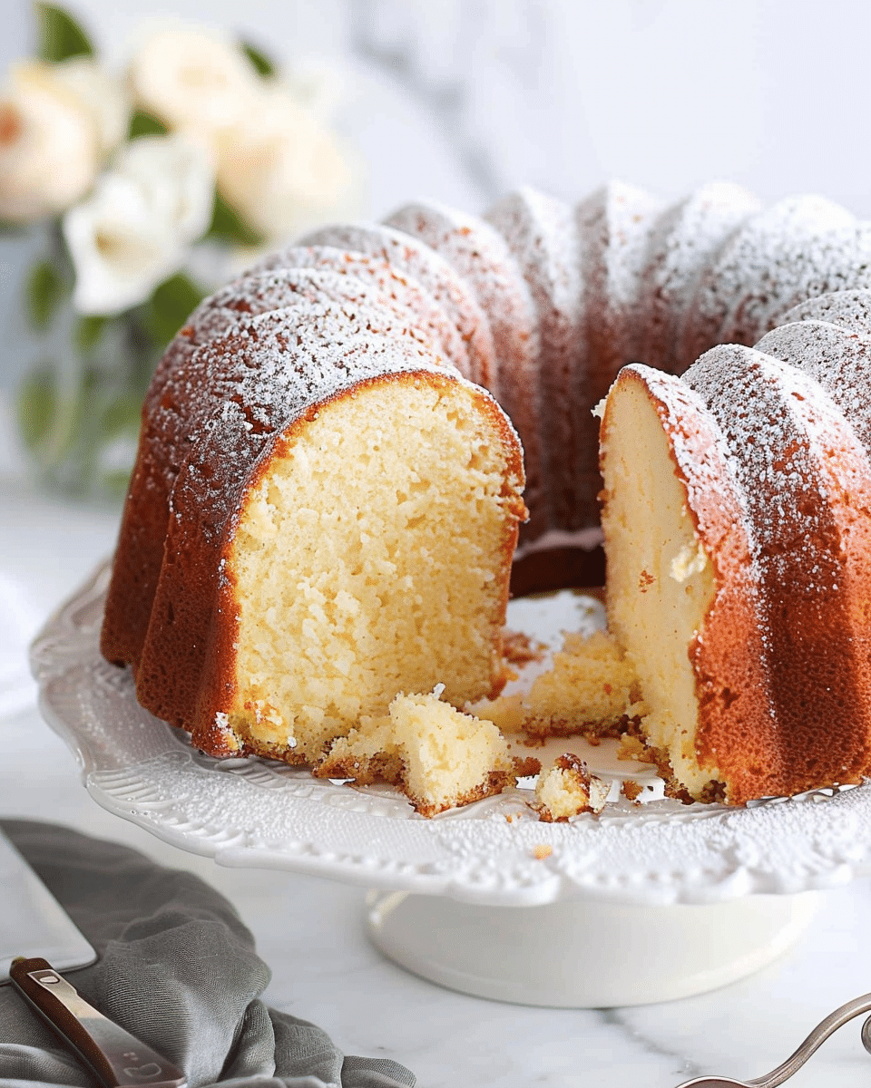 I love how this cake brings together the richness of cream cheese and the depth of flavor from both vanilla and almond extracts. It has a tender crumb that stays moist for days, and I don’t need any frosting or glaze to enjoy it—though it certainly doesn’t hurt. What I appreciate most is its simplicity: a handful of pantry staples, one bundt pan, and I’ve got a bakery-worthy dessert. It’s also incredibly versatile—perfect served plain, with berries, or a dusting of powdered sugar.