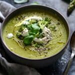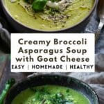 Creamy Broccoli Asparagus Soup with Goat Cheese