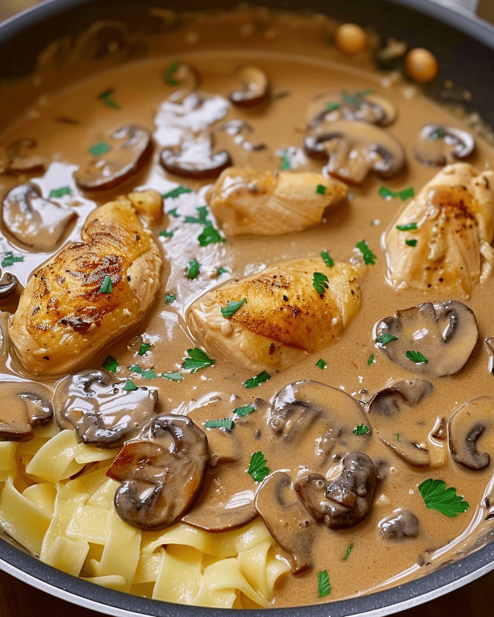 I love this recipe because it delivers deep, savory flavor with minimal cleanup. The combination of seared chicken, earthy mushrooms, and a garlicky cream sauce is pure comfort food, and everything cooks together in one skillet. It’s versatile, too—I can serve it over pasta, mashed potatoes, or even rice. Plus, it’s naturally low-carb if I’m watching that sort of thing.