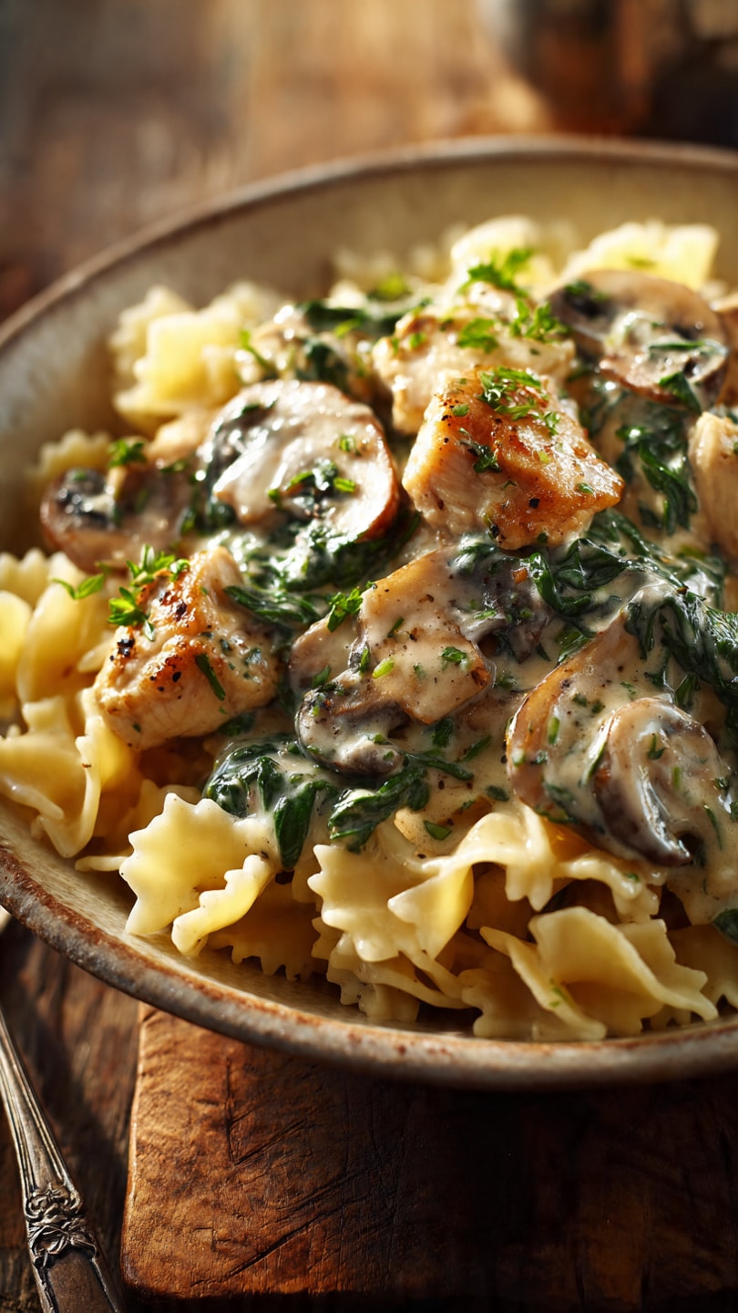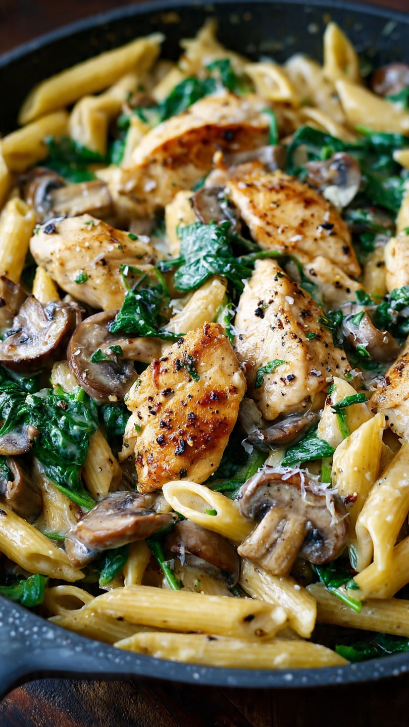 Creamy Chicken Marsala Pasta with Spinach and Mushrooms is a rich and comforting one‑pan pasta dish featuring tender chicken, earthy mushrooms, fresh spinach, and a silky Marsala wine cream sauce tossed with your favorite pasta. It’s perfect for cozy dinners or casual entertaining.