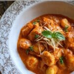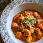 I store leftovers in an airtight container in the fridge for up to 3 days. When reheating, I warm it gently on the stove or in the microwave with a splash of broth or cream to bring the sauce back to life. I don’t recommend freezing it, since the gnocchi can become mushy and the sauce may separate.