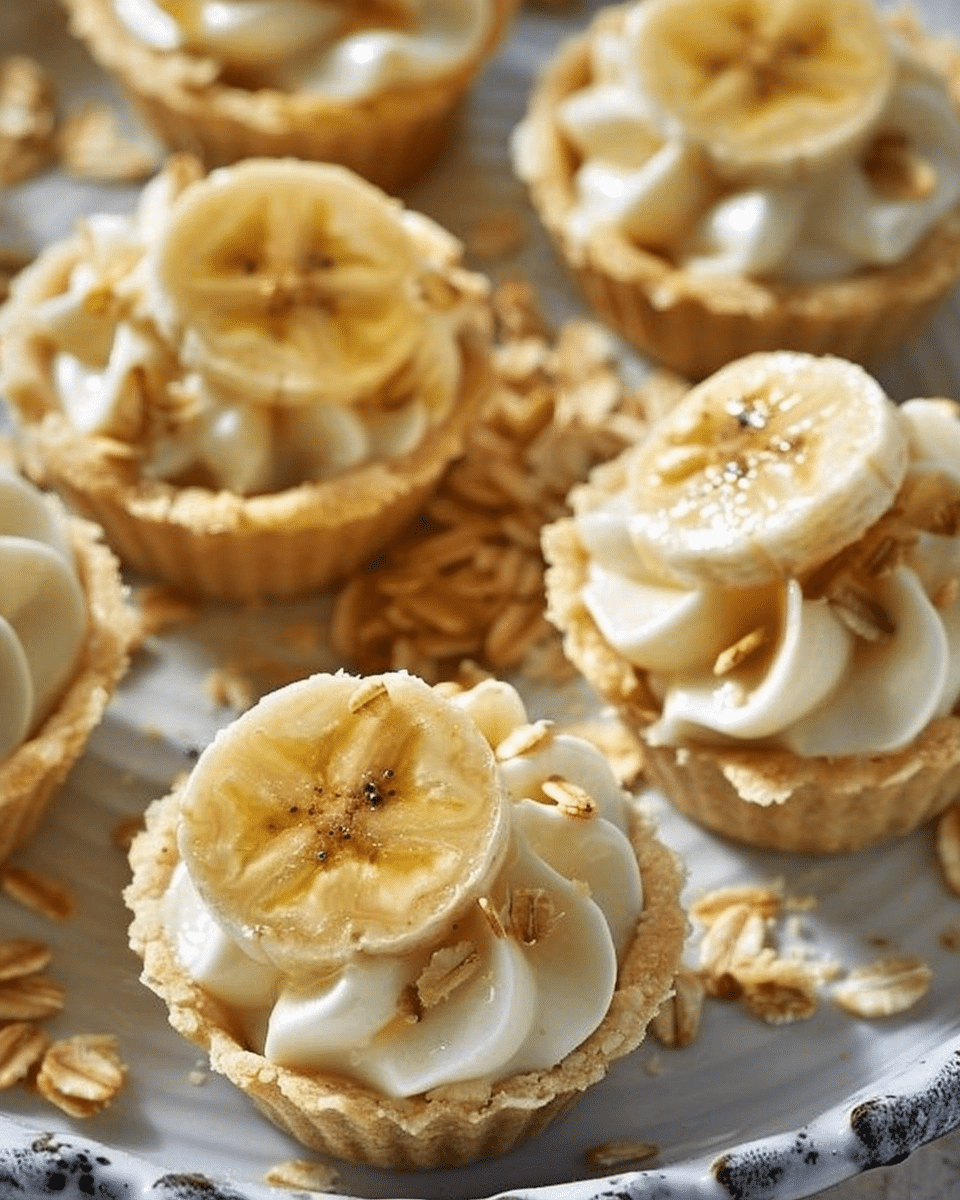I store leftover pies in the fridge, covered, for up to 3 days. The bananas may brown slightly over time, so I add fresh slices right before serving if needed. These are best enjoyed chilled — I don’t reheat them. If I want to make them ahead, I prepare the crusts and pudding separately and assemble them the day of serving to keep the bananas fresh.