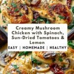 PrintCreamy Mushroom Chicken with Spinach, Sun-Dried Tomatoes & Lemon