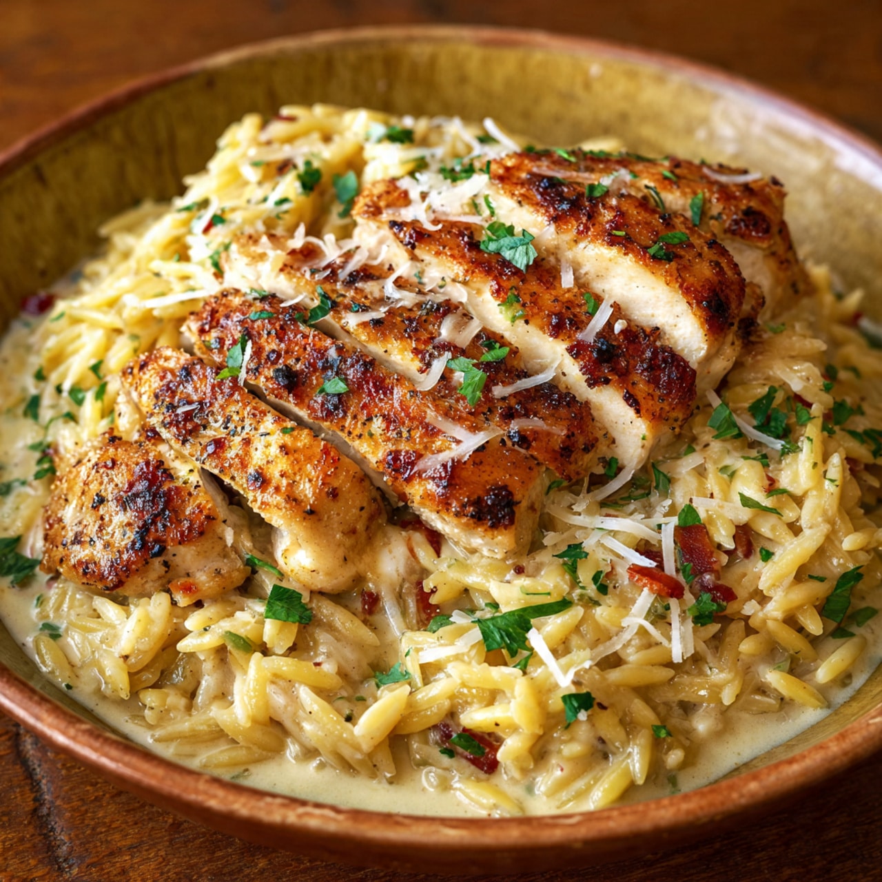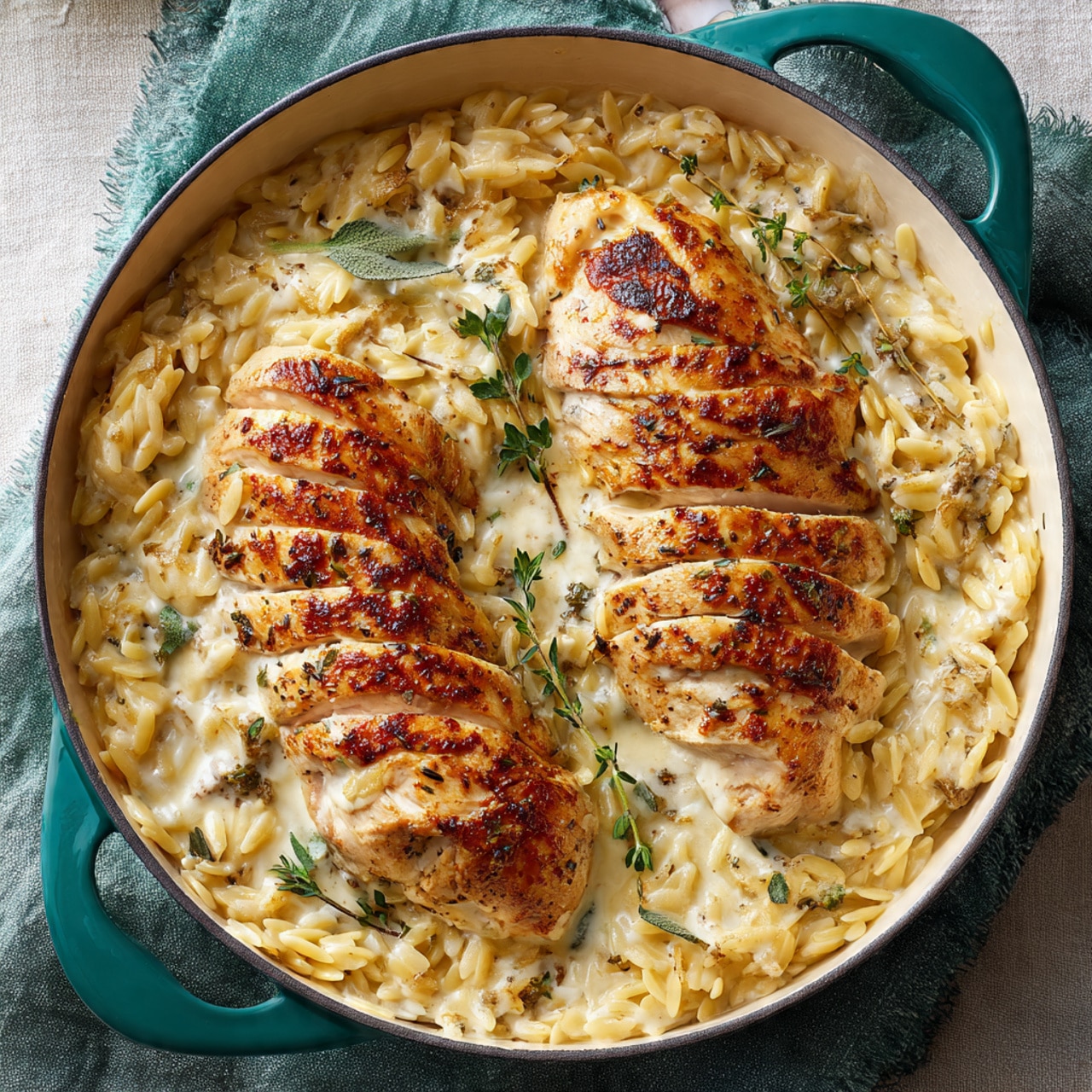 Creamy Parmesan Chicken and Orzo is a comforting one-pan meal featuring tender, seasoned chicken and creamy orzo infused with savory Parmesan. Rich yet balanced, this cozy dish comes together quickly for an easy and satisfying weeknight dinner.