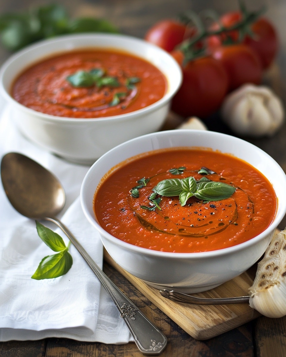 I find this creamy roasted tomato and garlic soup to be a comforting and flavorful dish that’s easy to make and always satisfying. It’s perfect for cozy days and pairs wonderfully with simple sides.