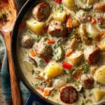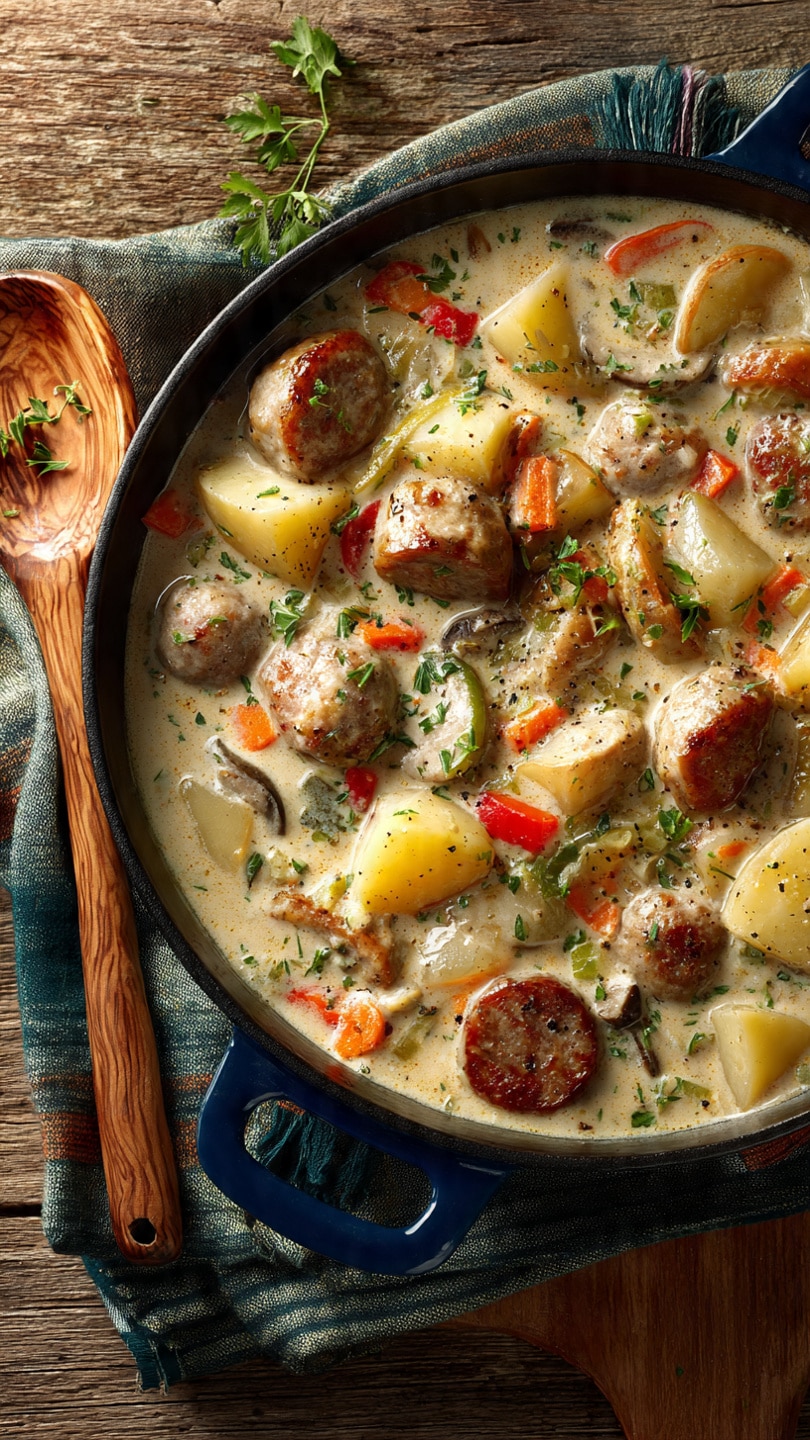 A rich and hearty stew with tender potatoes, savory sausage, and a creamy, herb-infused broth. Comforting, filling, and perfect for cold days.