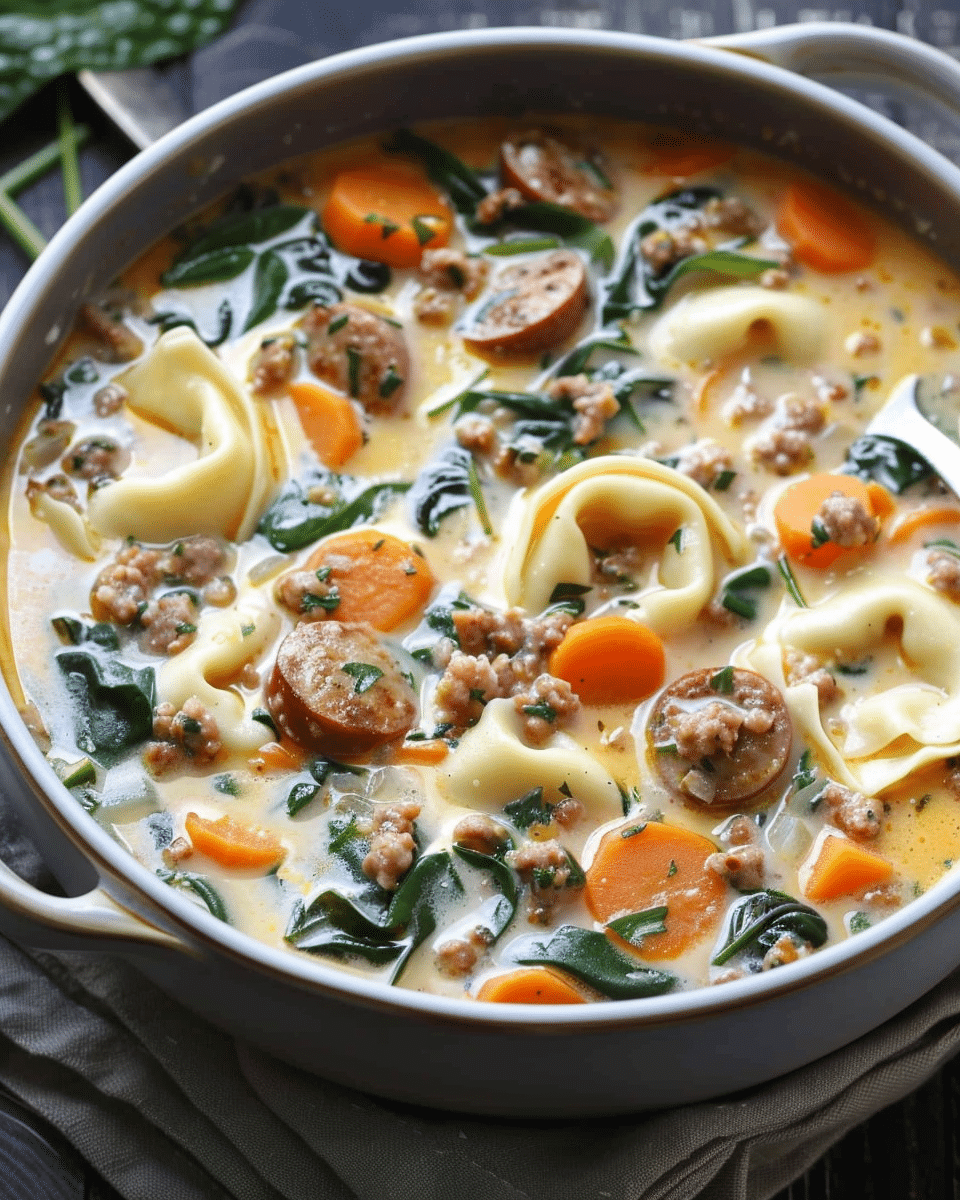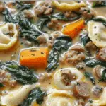 PrintCreamy Sausage Tortellini Soup with Spinach and Sweet Potatoes