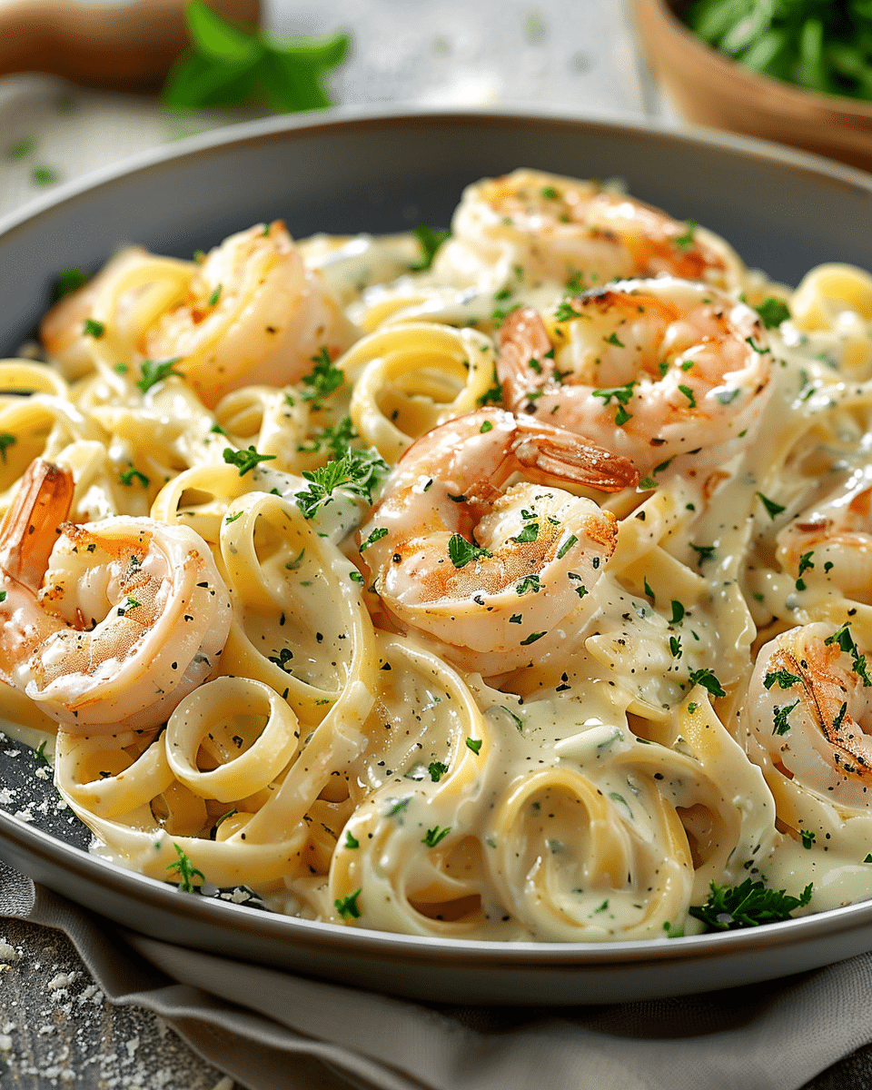 This Creamy Shrimp Fettuccine Pasta features tender shrimp tossed with silky fettuccine and a rich, homemade Alfredo sauce made with garlic, butter, heavy cream, and Parmesan. It’s an easy, indulgent recipe perfect for weeknights or special occasions. Ready in just 30 minutes, this one-pan shrimp Alfredo pasta delivers restaurant-quality flavor in every bite.