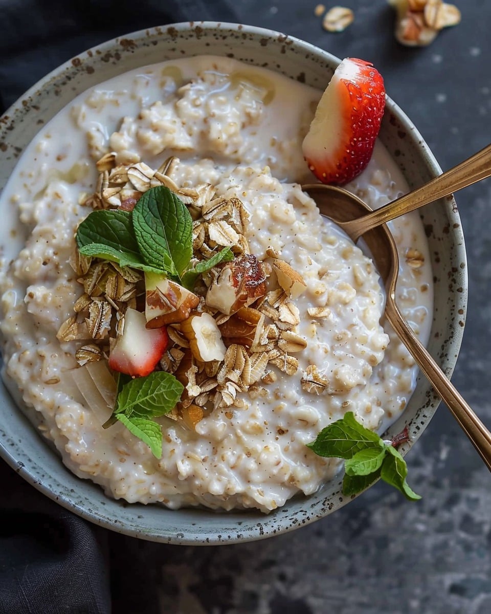 Creamy steel-cut oats are a warm, hearty breakfast made by slowly simmering oats with water and milk until thick and rich. This nourishing dish has a slightly chewy texture and can be easily customized with sweet toppings like fruit, nuts, honey, or spices.
