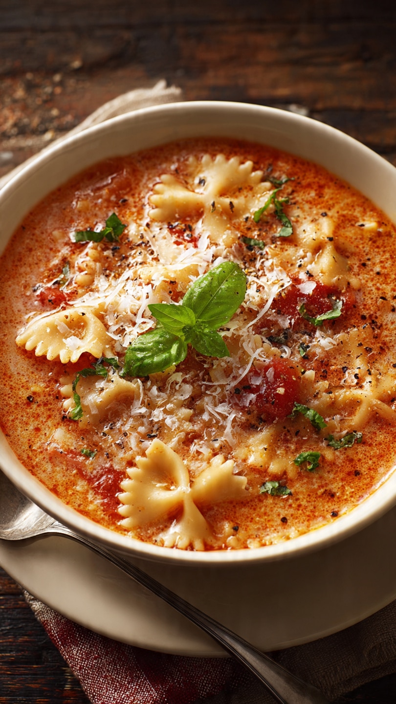 Sometimes I add mushrooms, bell peppers, or kale depending on what’s in my fridge. I’ve also used bowtie or rotini pasta instead of broken lasagna noodles. For a vegan version, I use dairy-free cream and skip the cheese or add vegan alternatives. To make it thicker, I reduce the broth slightly or add more noodles.