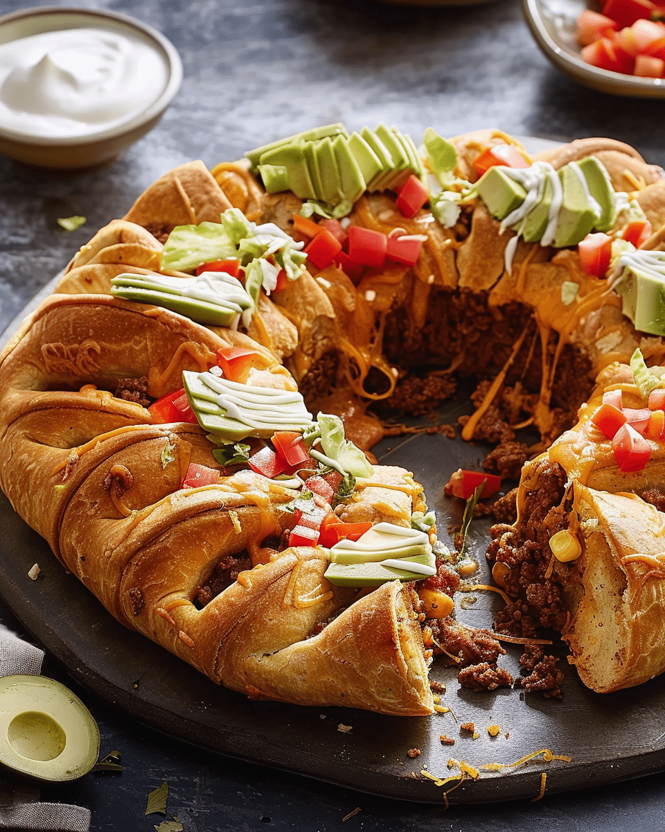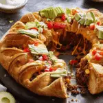 I love how playful and flavorful this recipe is. It turns everyday ingredients into something that’s perfect for a themed gathering. The taco filling is rich and satisfying with seasoned ground beef, black beans, and gooey melted cheese. The crescent dough bakes up golden and flaky, wrapping the whole thing in a buttery crust. Plus, it’s interactive—everyone enjoys pulling it apart and scooping up the taco filling with their favorite toppings. It’s festive without being fussy, which is exactly how I like my party food.