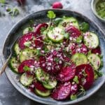 This crisp cucumber and beetroot salad with herb dressing is a light, refreshing dish featuring crunchy cucumbers, earthy beets, and a zesty herb-packed vinaigrette. It’s colorful, flavorful, and perfect as a side or light main meal.