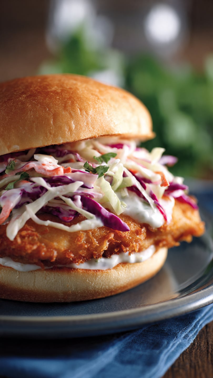 I store leftover chicken and slaw separately in the fridge for up to 3 days. To reheat the chicken, I use the oven or air fryer to keep it crispy—around 350°F for 10 minutes. I don’t recommend microwaving the chicken if I want it to stay crunchy.
