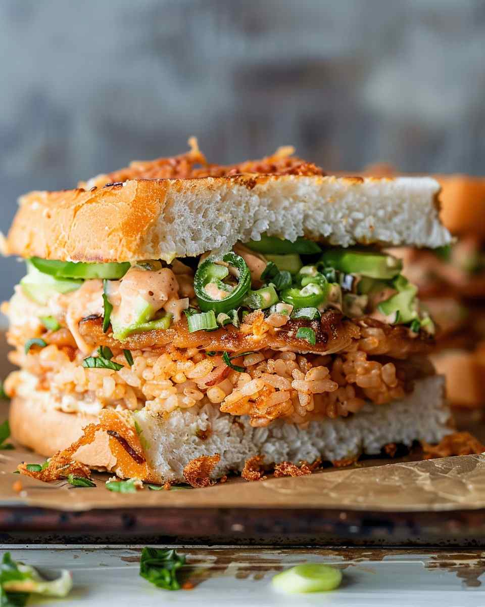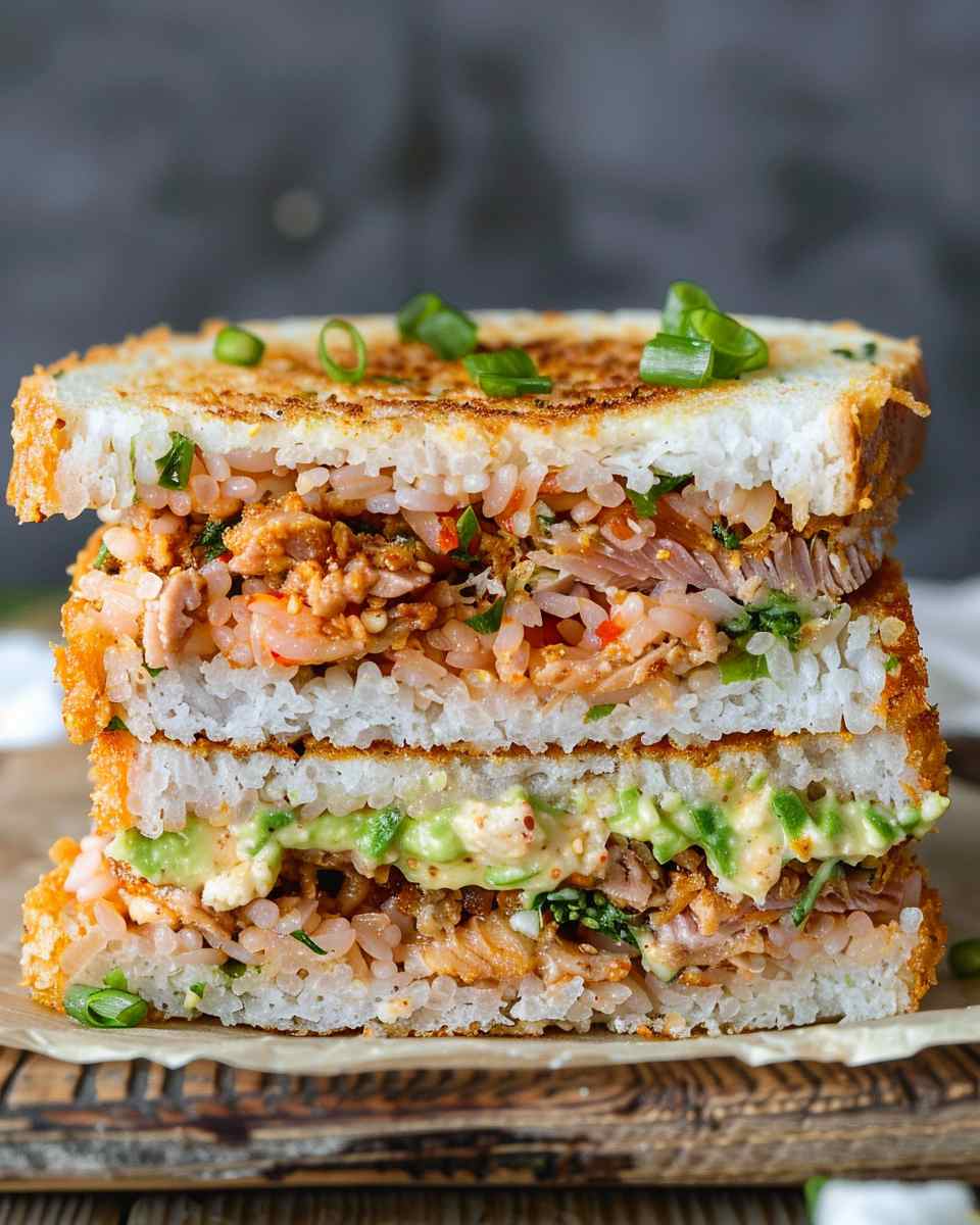 Crispy Rice Spicy Tuna Sandwich is a unique and flavorful dish featuring golden crispy rice paired with a creamy, spicy tuna filling for a crunchy and satisfying bite.