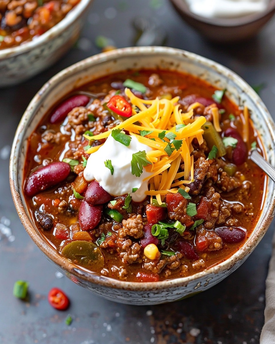 A hearty and comforting crockpot chili that slowly simmers into a rich, flavorful meal perfect for busy days, leftovers, or meal prep.