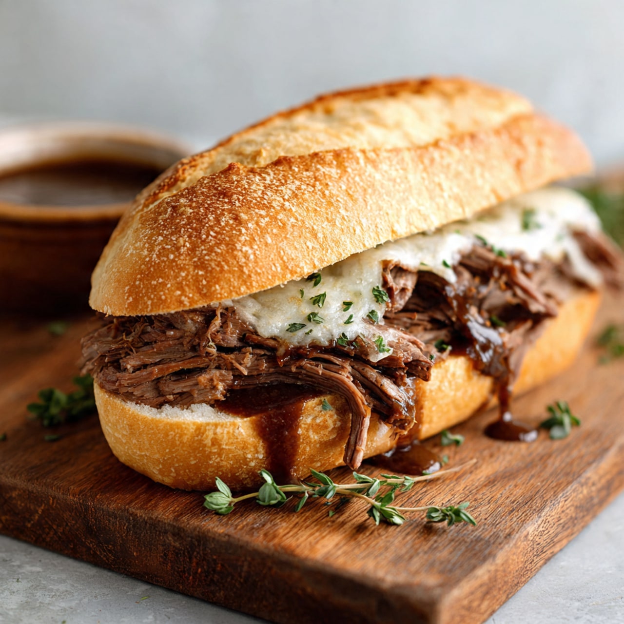 I often prepare the beef a day in advance. The flavor deepens overnight, and I simply reheat it in the broth before assembling the sandwiches.