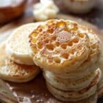 Crumpets are soft, spongy griddle cakes with signature bubbles on top, perfect for soaking up butter and jam. This easy homemade crumpet recipe uses simple pantry ingredients for a warm, comforting breakfast or teatime treat that’s better than store-bought.
