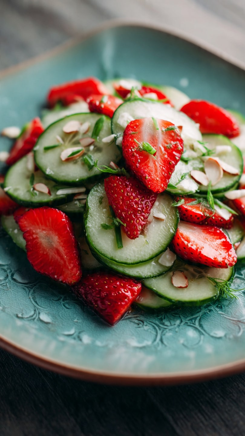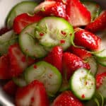 Cucumber Strawberry Salad is a fresh and colorful salad made with juicy strawberries, crisp cucumbers, herbs, and a light dressing. It’s a quick, no-cook dish perfect for spring and summer meals, picnics, or snacks.
