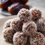 I store date balls in an airtight container in the fridge for up to 1 week, or freeze them for up to 3 months. I let frozen ones thaw for a few minutes before eating. These don’t require reheating—they’re best enjoyed chilled or at room temperature.